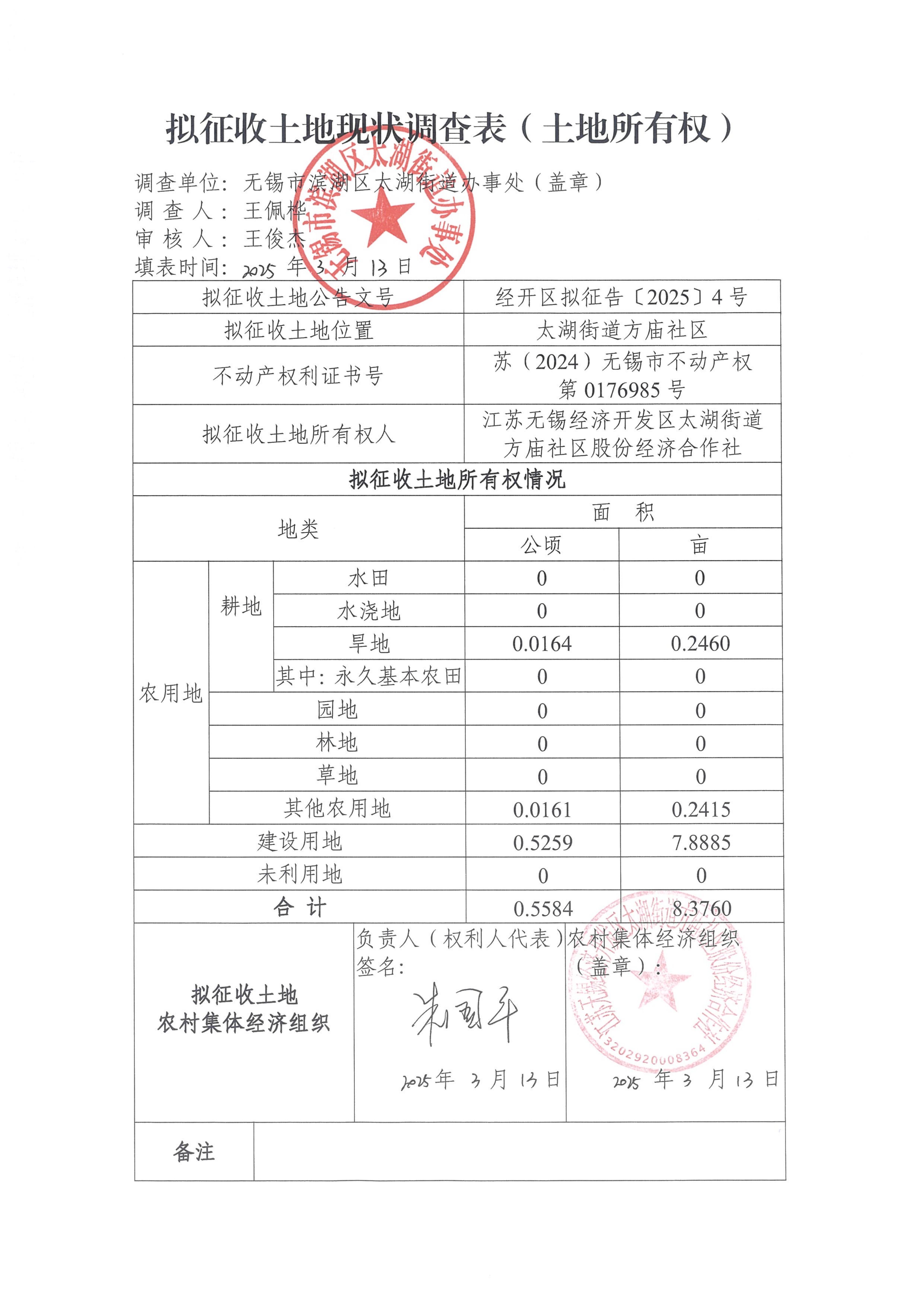 經開區擬征告〔2025〕4號確認-地鐵4號線市民中心站站城一體化更新改造工程-太湖街道方廟社區股份經濟合作社
