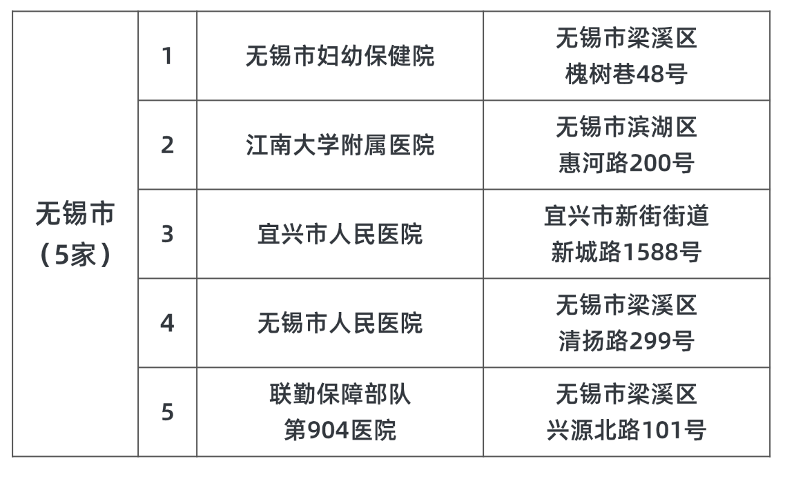 附表1:開展人類輔助生殖技術的醫療機構名單(無錫)