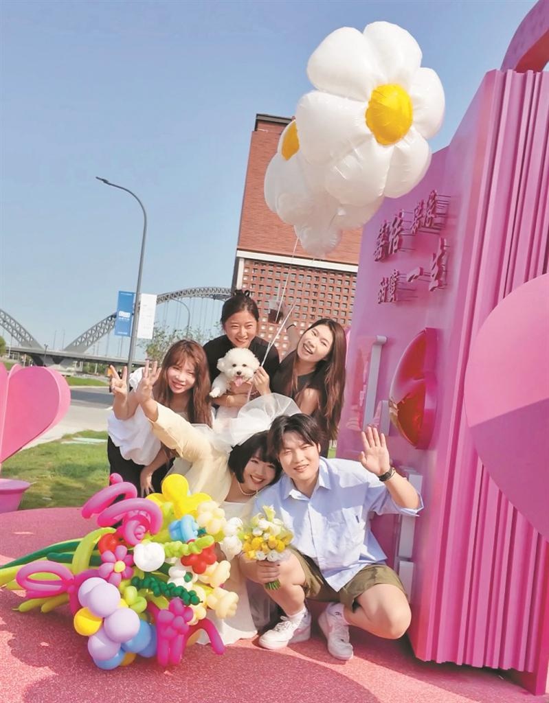 這一婚姻登記點位的啟用,也標志著梁溪首個以婚嫁人文為主題的輕文旅微度假項目——“南尖·慢谷”正式開啟。“南尖·慢谷”位于古運河與京杭大運河交匯的河尖區域,占地約9.7萬平方米,綠化覆蓋率達65%。項目以“婚禮藝術中心+文化街區+新商業”為核心模式,構建多層次婚慶消費場景。據項目負責人介紹,未來園區將圍繞“錫生活”“愛”“藝術”三大主題,推出常態化活動,5月下旬公園內還將舉辦婚嫁主題的“幸福體驗季”,聯合知名品牌打造沉浸式婚禮秀。