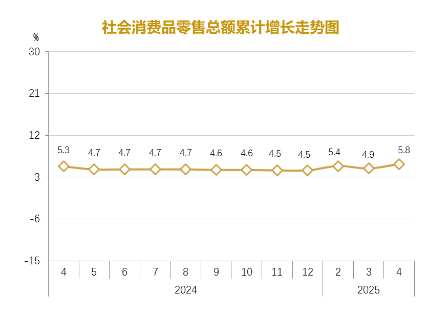 | 內容概述 | 2025年1-4月社會消費品零售總額增長5.8% | ||||