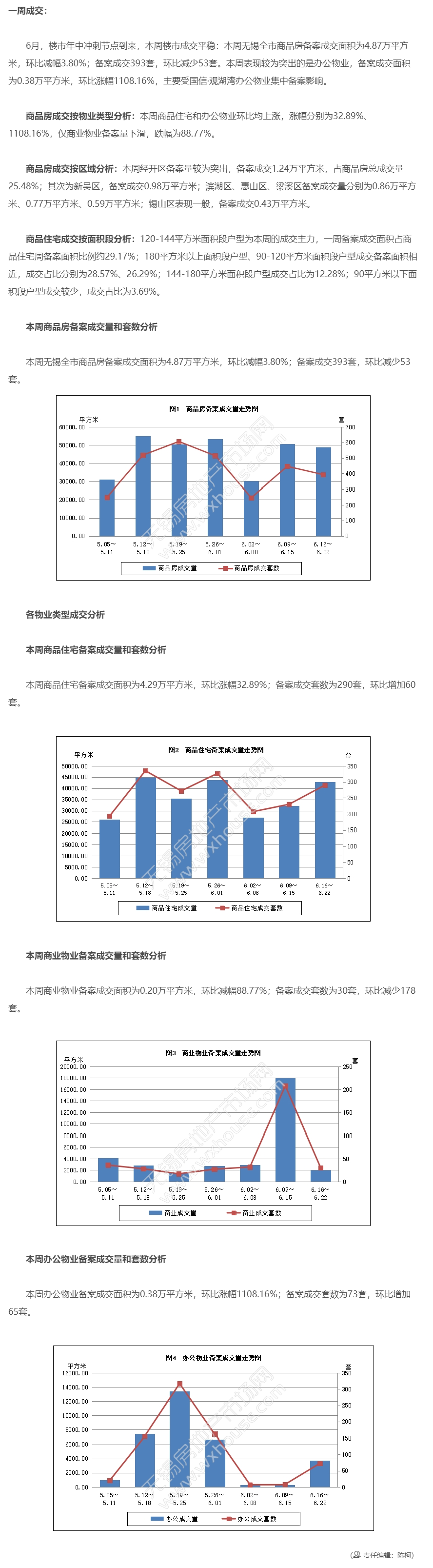內容概述 6.16~6.22無錫商品房一周備案成交4.87萬平方米