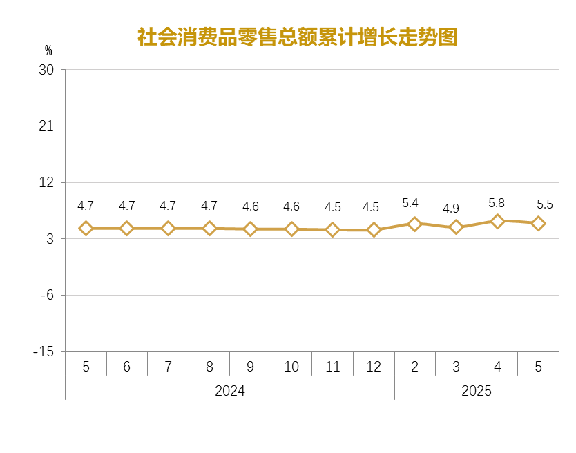 | 內容概述 | 2025年1-5月社會消費品零售總額增長5.5% | ||||