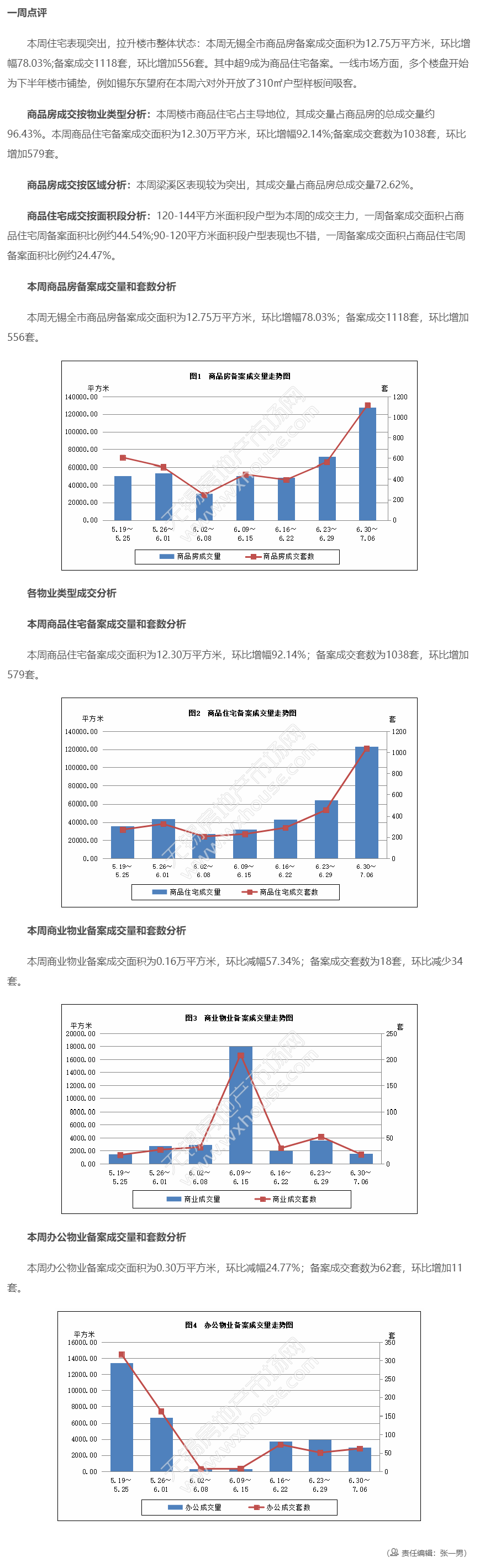 6.30~7.06無錫商品房一周備案成交12.75萬平方米 |