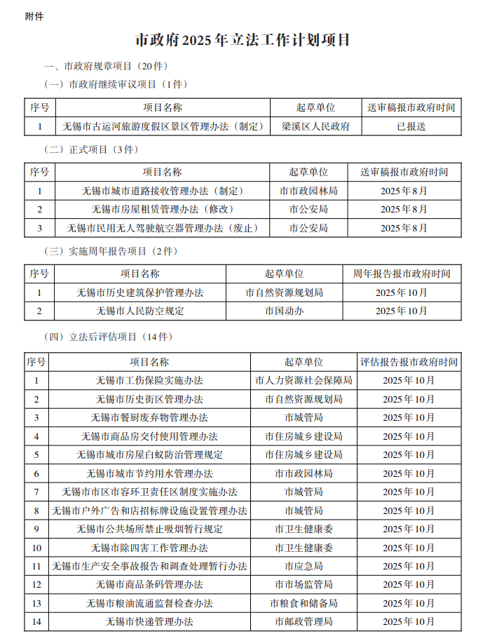無(wú)錫市人民政府 2025 年立法工作計(jì)劃