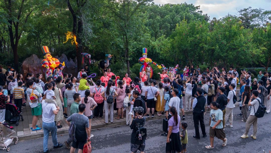 一場(chǎng)萌寵巡游在園區(qū)主道上演。
