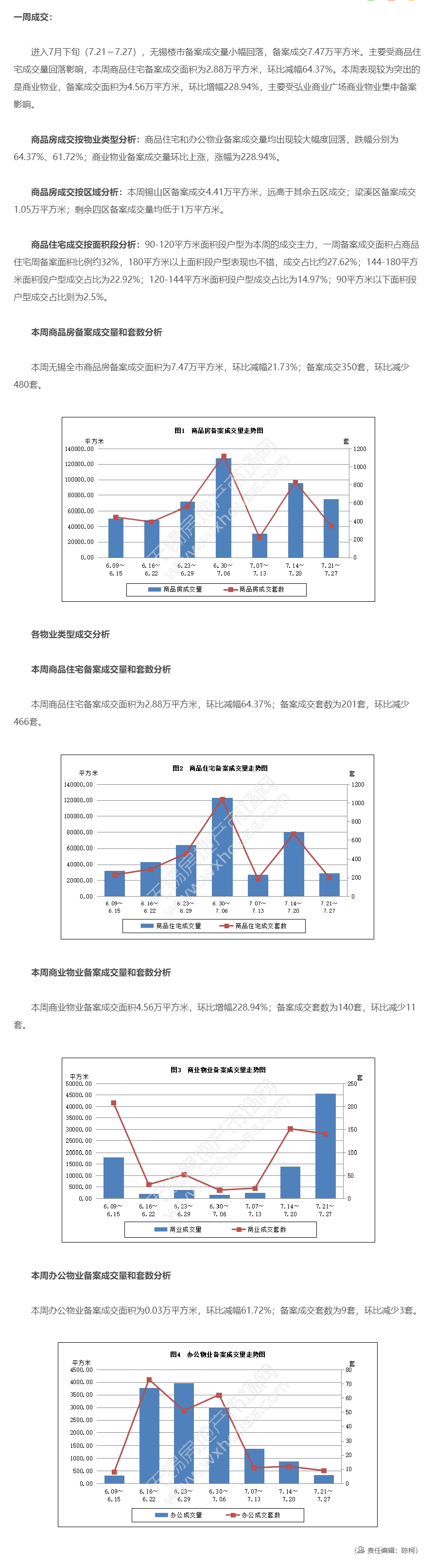 內容概述 7.21~7.27無錫商品房一周備案成交7.47萬平方米