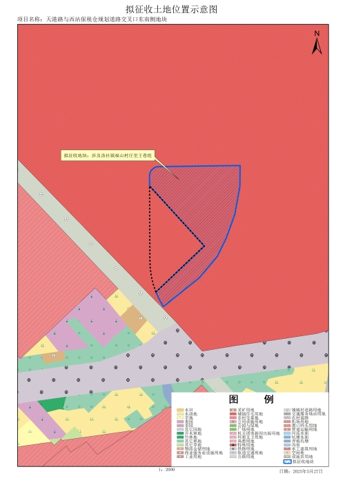 由縣級以上地方人民政府組織實施的成片開發建設需要用地,項目名稱為天港路與西站保稅倉規劃道路交叉口東南側地塊。