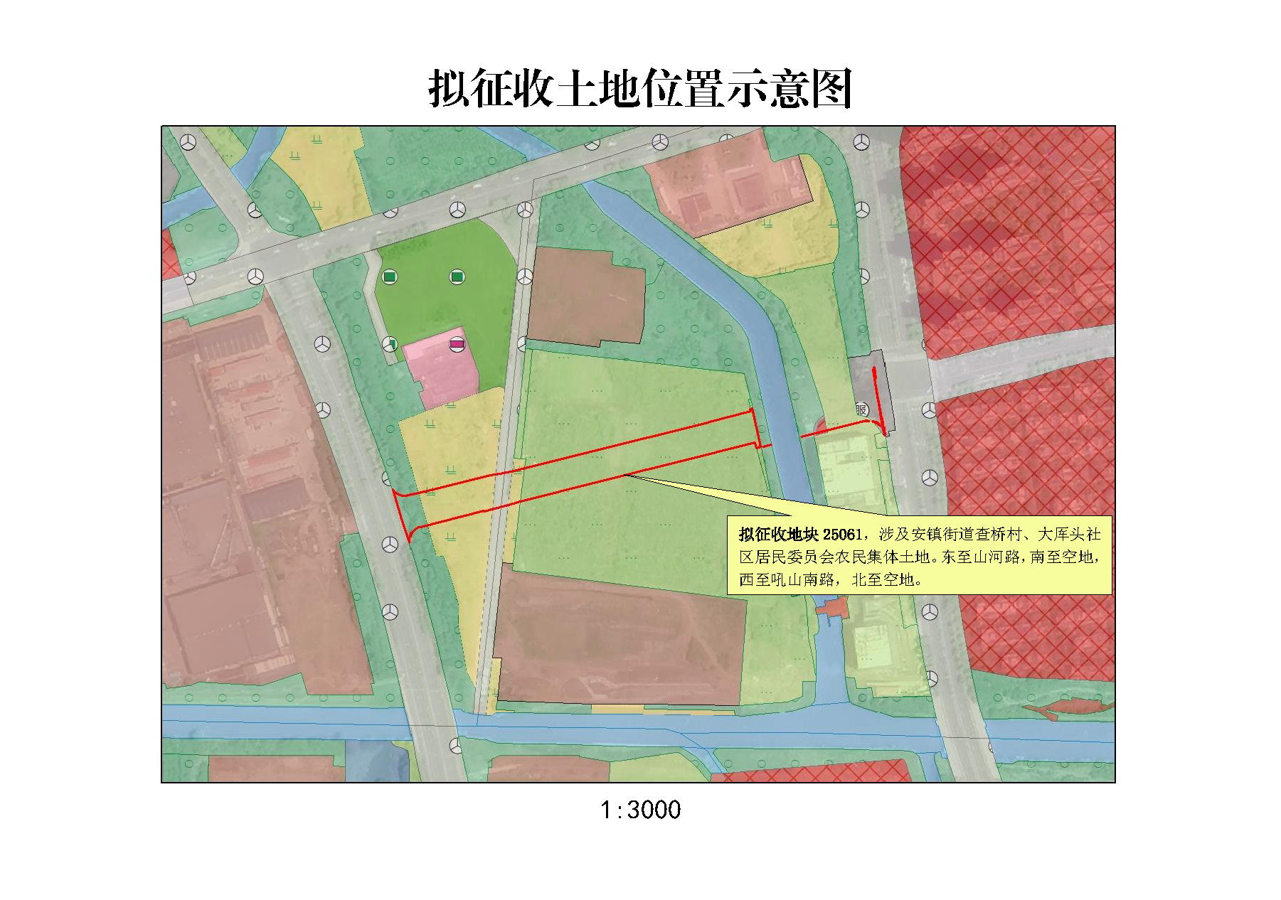 本次擬征收土地位于安鎮(zhèn)街道查橋村、大厙頭社區(qū)居民委員會(huì)農(nóng)民集體范圍內(nèi)。擬征收土地位置詳見(jiàn)附圖。