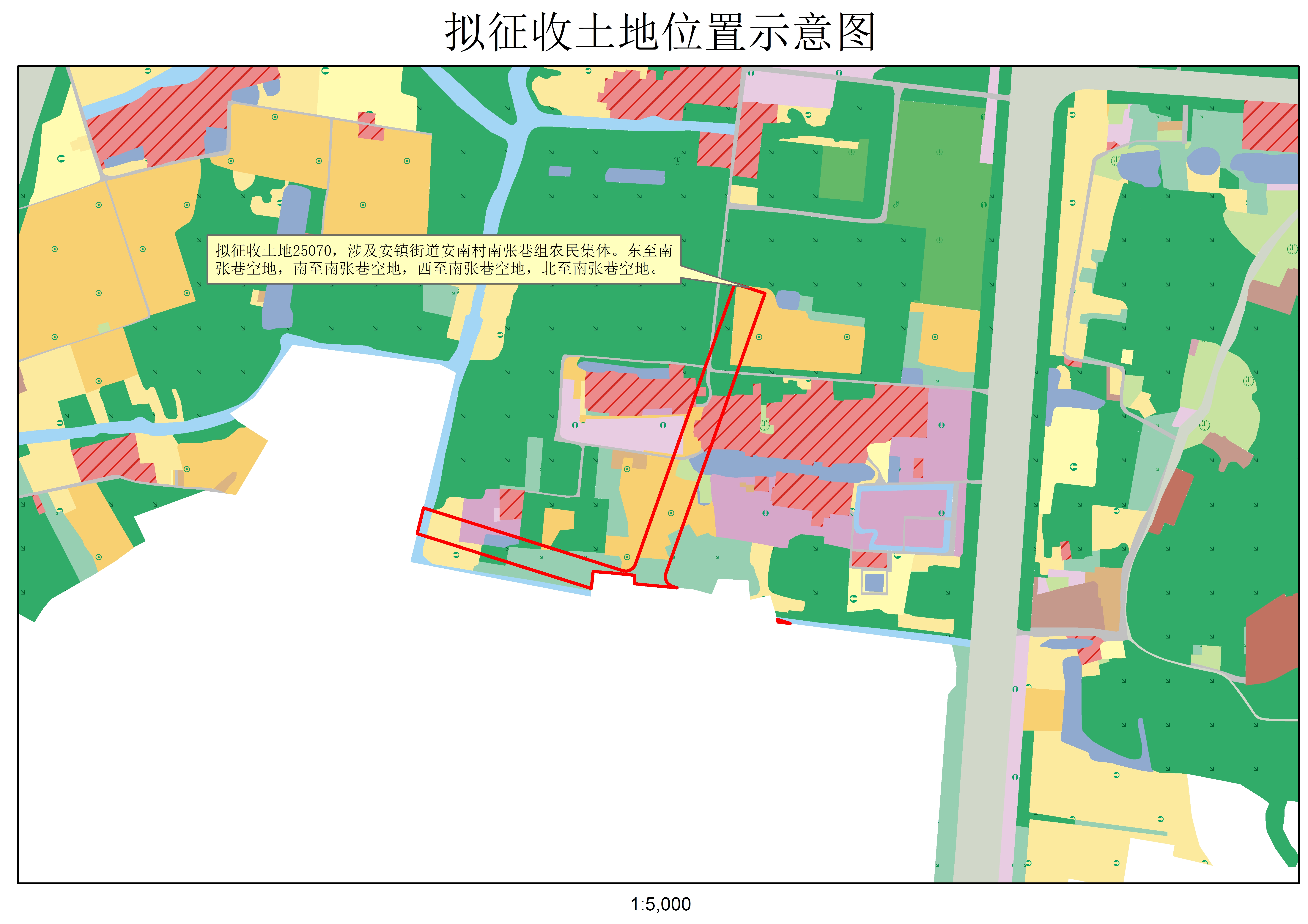 本次擬征收土地位于安鎮街道安南村南張巷組范圍內。擬征收土地位置詳見附圖。
