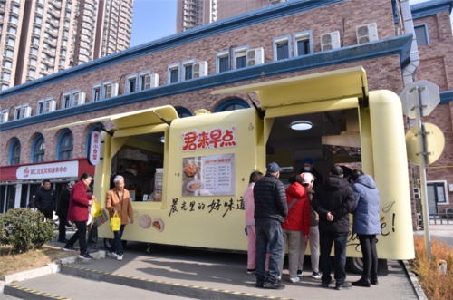 12月18日,第二家君來小食堂在梁溪區廣益街道御墅花園128號開業。早上7點不到,不少居民已來到廣益店,購買小食堂的招牌早點——“四大金剛”大餅、油條、粢飯和豆漿。由于人多,專門售賣“四大金剛”的早餐車前排起了隊。