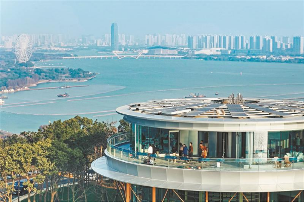 “以前山頂根本沒(méi)有休息區(qū),現(xiàn)在你看,坐在三層咖啡區(qū)就能把雙湖景色拍全,衛(wèi)生間又干凈又寬敞!”昨天上午10點(diǎn),弧形觀景平臺(tái)上已是人流涌動(dòng),年輕情侶站在彩色“101”裝置前打卡,走進(jìn)建筑內(nèi)部,首層多功能展示區(qū)的無(wú)錫徒步線路圖前圍滿游客,二層書吧的藤椅上,年輕人捧著書,陽(yáng)光透過(guò)玻璃灑在書頁(yè)間;三層觀景平臺(tái)上,不少家庭駐足拍照,小朋友們指著遠(yuǎn)處的紅嘴鷗興奮呼喊。“最驚喜的是細(xì)節(jié),比如衛(wèi)生間的洗手液都是伊索品牌的,很加分;還有隨處可見(jiàn)的休息座椅,再也不用‘站著觀景’了。”來(lái)自蘇州的游客陳昊說(shuō),他特意帶著家人來(lái)體驗(yàn)“一山觀兩湖”,“硬件跟上了,體驗(yàn)感直接翻倍”。
