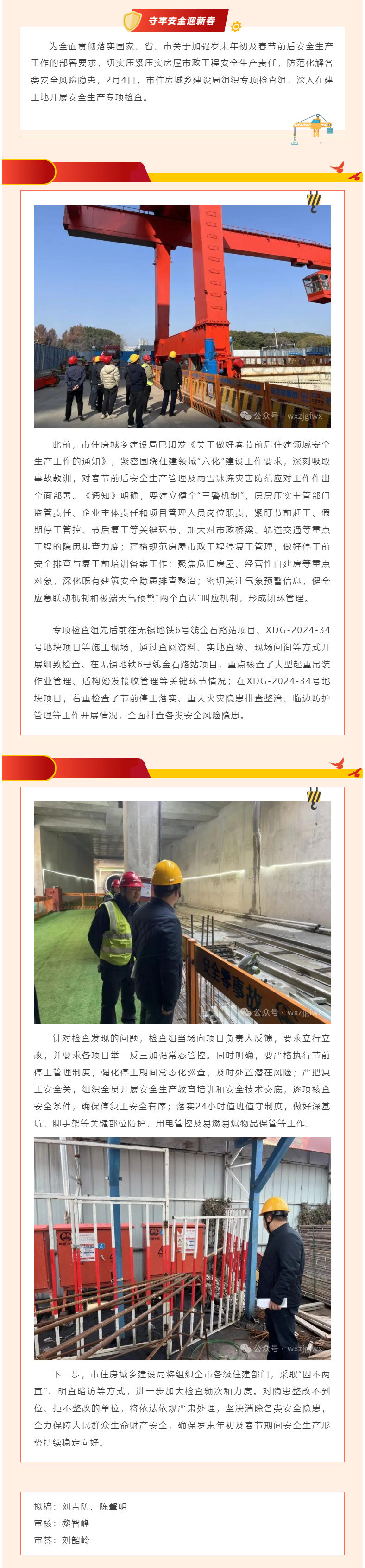 嚴查細督筑防線守牢安全迎新春|市住房城鄉(xiāng)建設局開展在建工地安全生產(chǎn)專項檢查 |