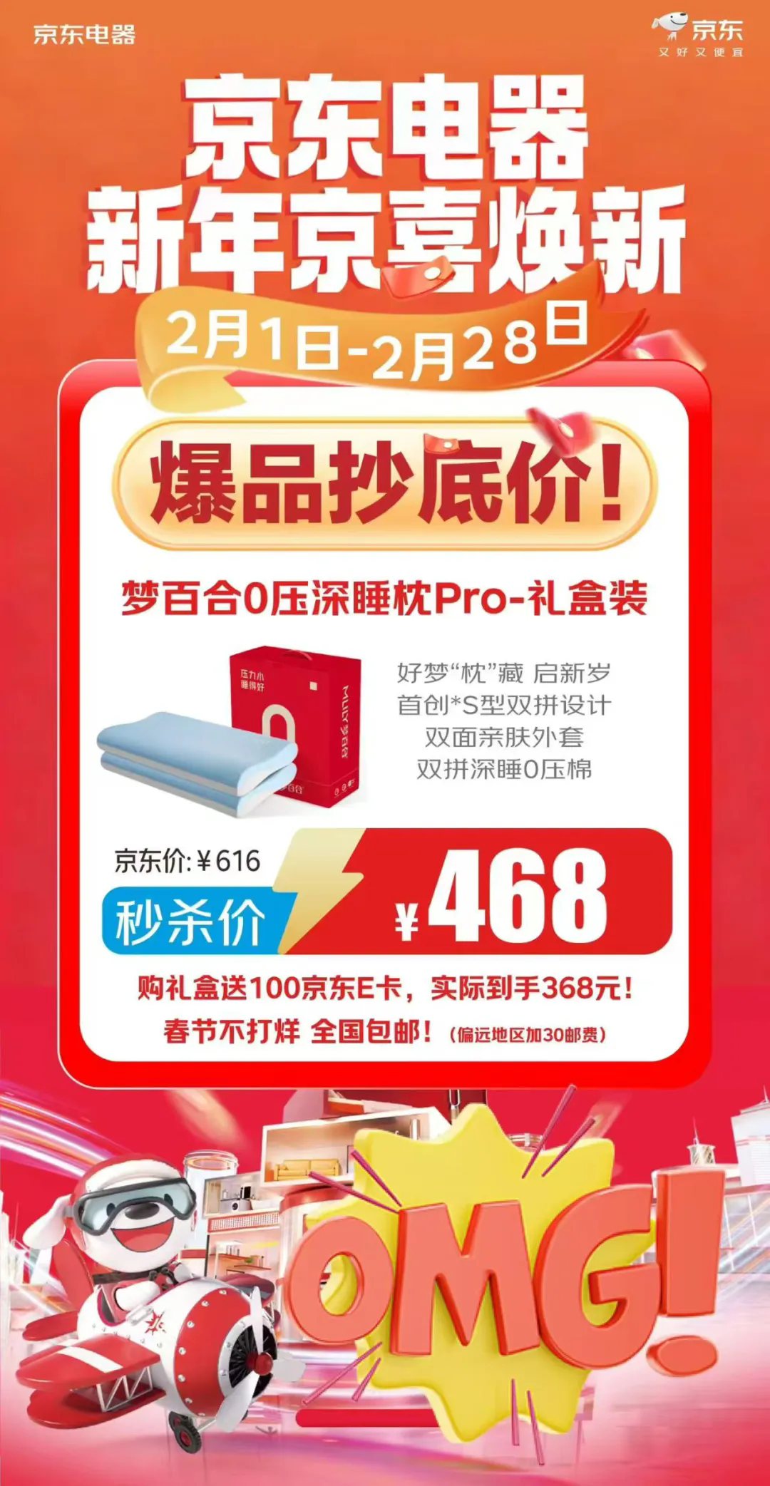 部分產(chǎn)品存50元享150元,格力3P風(fēng)管機(jī)2699限量開(kāi)搶,夢(mèng)百合0壓深睡枕Pro-禮盒裝秒殺價(jià)468,購(gòu)禮盒送100京東E卡,實(shí)際到手368元。
