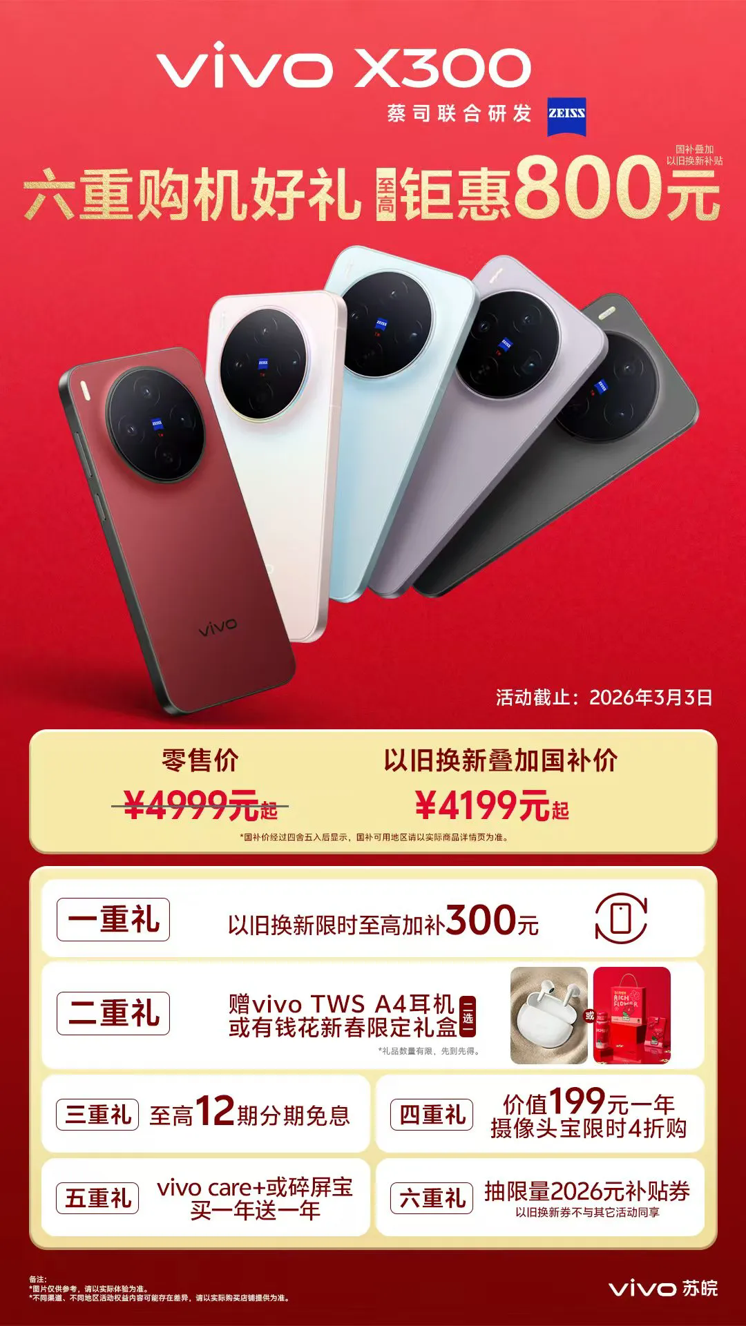 X300以舊換新滿200補(bǔ)300,疊加國(guó)補(bǔ)至高立減800。