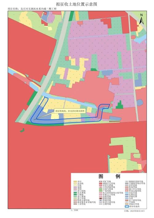 由縣級以上地方人民政府組織實施的成片開發建設需要用地,項目名稱為北莊河尤湖浜系溝通二期工程。