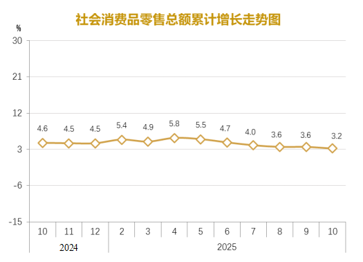 | 內(nèi)容概述 | 2025年1-10社會消費(fèi)品零售總額增長3.2% | ||||
