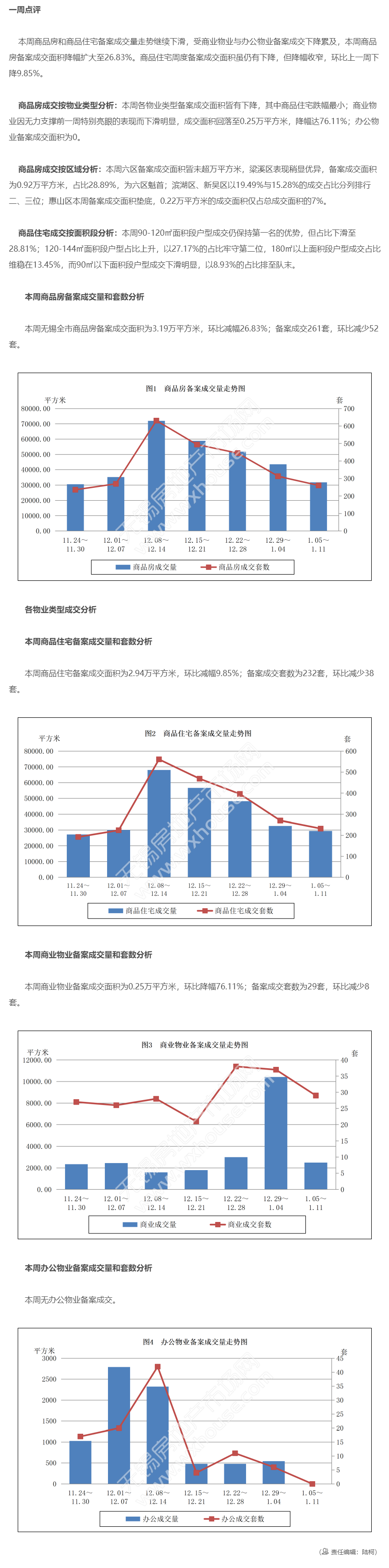 內容概述 1.05~1.11無錫商品房一周備案成交3.19萬平方米